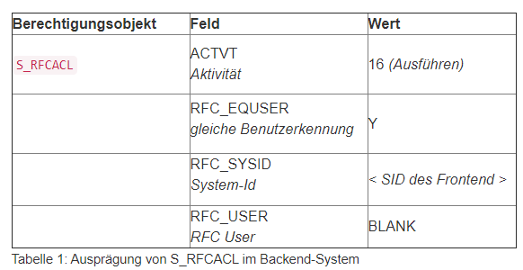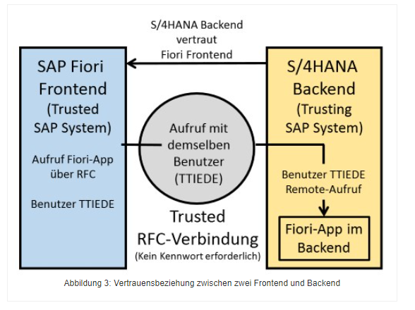Die Trennung von Frontend- und Backend-Server bringt Sicherheitsaspekte bzgl. der Absicherung der RFC-Berechtigungen und des Trusted RFC mit sich. Trusted Systems sind SAP-Systeme, die sich gegenseitig vertrauen. Dies bedeutet, dass Zugriffe von einem System auf das andere ohne explizite Authentifizierung möglich sind.