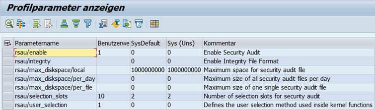 Abb. 2: Kernelparameter in der Transaktion RSAU_CONFIG