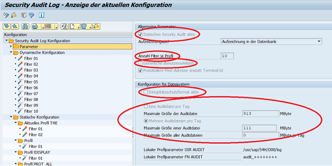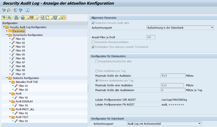 Die konkrete Ausprägung der einzelnen Filter ist von verschiedenen Faktoren abhängig. Bei einer vollständigen Aufzeichnung aller Benutzeraktivitäten sind die entstehenden Protokollinhalte sehr sensibel, da über deren Auswertungen Rückschlüsse auf das Arbeitsverhalten der einzelnen Mitarbeiter möglich wären. Außerdem können hier große Datenmengen auch aufgrund der Hintergrundaktivitäten der Technischen Benutzer entstehen.