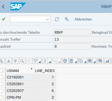 Im Ergebnis werden alle Geschäftsvorfälle aufgelistet in welchen derselbe Benutzer die Bestellung, den dazugehörigen Wareneingang und die dazugehörige Rechnung angelegt hat. Dabei handelt es sich um einen Funktionstrennungskonflikt und es sollte jedem einzelnen Fall nachgegangen werden. In manchen Fällen lassen sich Funktionstrennungskonflikte nicht vermeiden, dafür sollte jedoch eine zusätzliche mitigierende Kontrolle eingerichtet sein, in welcher z.B. stichprobenartig die einzelnen Belege und deren Buchungen eingesehen werden.