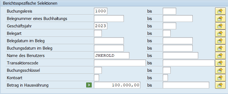 Im nächsten Schritt müssen alle Buchungen des Benutzers ermittelt werden, deren Betrag oberhalb der ihm zugewiesenen Betragsgrenze liegen. Diese Informationen sind in den Tabellen BKPF und BSEG zu finden. Verknüpft man die beiden Tabellen in einem QuickView über die Schlüsselfelder BUKRS, BELNR und GJAHR, ist es möglich, alle Belege in einem Schritt nach Benutzer und Buchungsbetrag zu filtern. Auf diese Weise können beispielsweise alle Buchungen eines Benutzers ermittelt werden, bei denen der Betrag pro Kontokorrent-Position oberhalb der ihm zugeordneten Betragsgrenze liegt.