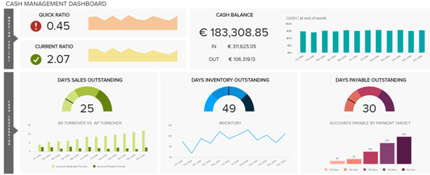 Sie haben einen Screenshot eines Dashboards, das die Kennzahlen des Cash Managements Ihres Unternehmens darstellt. Sie möchten sich nun die folgende Grafik von ChatGPT erklären lassen.