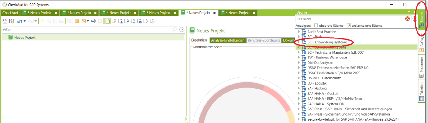 In CheckAud® gibt es seit dem letzten Release-Wechsel einen eigenen Vorlage-Prüfbaum speziell für Entwicklungssysteme (siehe Abb.1).